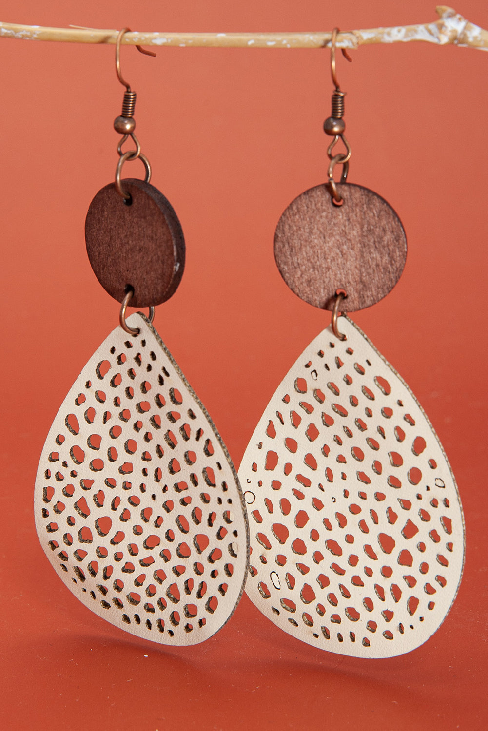 These earrings are perfect to elevate your style and make a statement The unique waterdrop-shape design with a wood circle adds a touch of vintage The cut-out details add a pop of color to any outfit Hook earrings for easy and comfortable wear earrings are crafted with high-quality materials for long-lasting wear